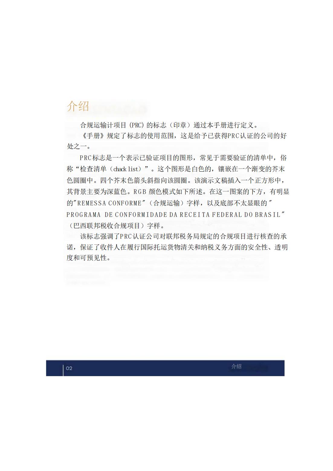 8.3 需要提前在簡(jiǎn)易進(jìn)口稅金系統(tǒng)(RTS)中注冊(cè),如果是快遞,則需要在承載該商品的交通工具預(yù)計(jì)到達(dá)巴西的 2 小時(shí)之前;如果是郵政,則需要在承載該商品的交通工具預(yù)計(jì)到達(dá)巴西的 48 小時(shí)之前。